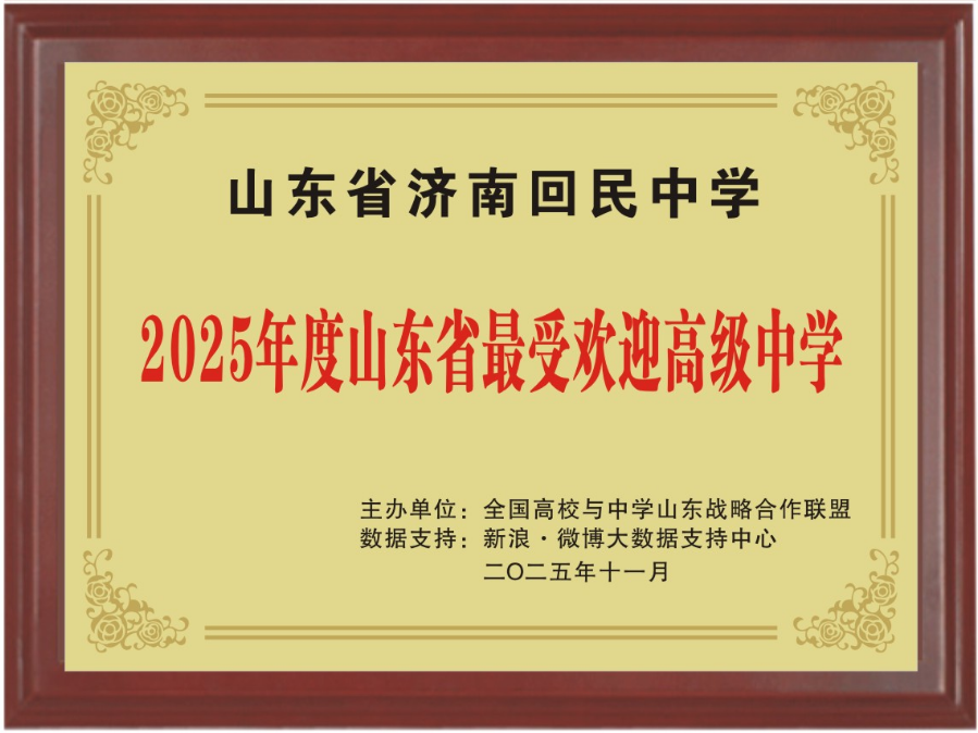 近日,2025年度山东教育盛典荣耀榜单盛大揭晓,山东省济南回民中学凭借在教育高质量发展实践中的卓越成效与鲜明办学特色,成功斩获“2025年山东省最受欢迎高级中学”奖项,这份荣誉既是对学校办学成果的权威认可,更是对其深耕教育初心、彰显民族特色育人实践的高度赞誉。