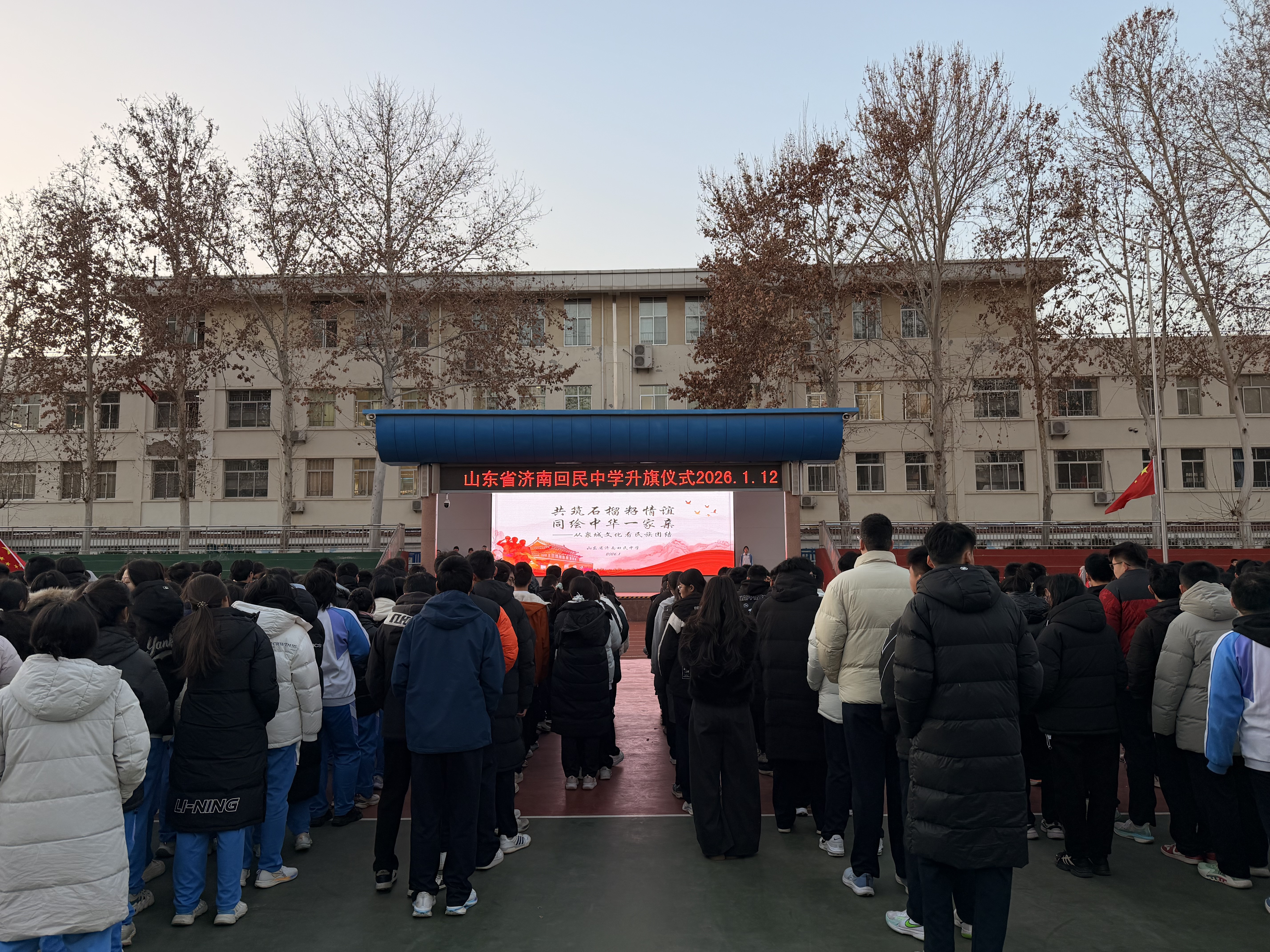 今天,我们站在鲜艳的五星红旗下,共同开启新的一周。当晨光洒满这座美丽的校园,当我们在“读书、爱国、做自信回中人”的校训前驻足,我想与大家一起思考:在泉城济南这片土地上,在我们回民中学这个大家庭里,如何理解并践行那份深厚的民族团结情谊。