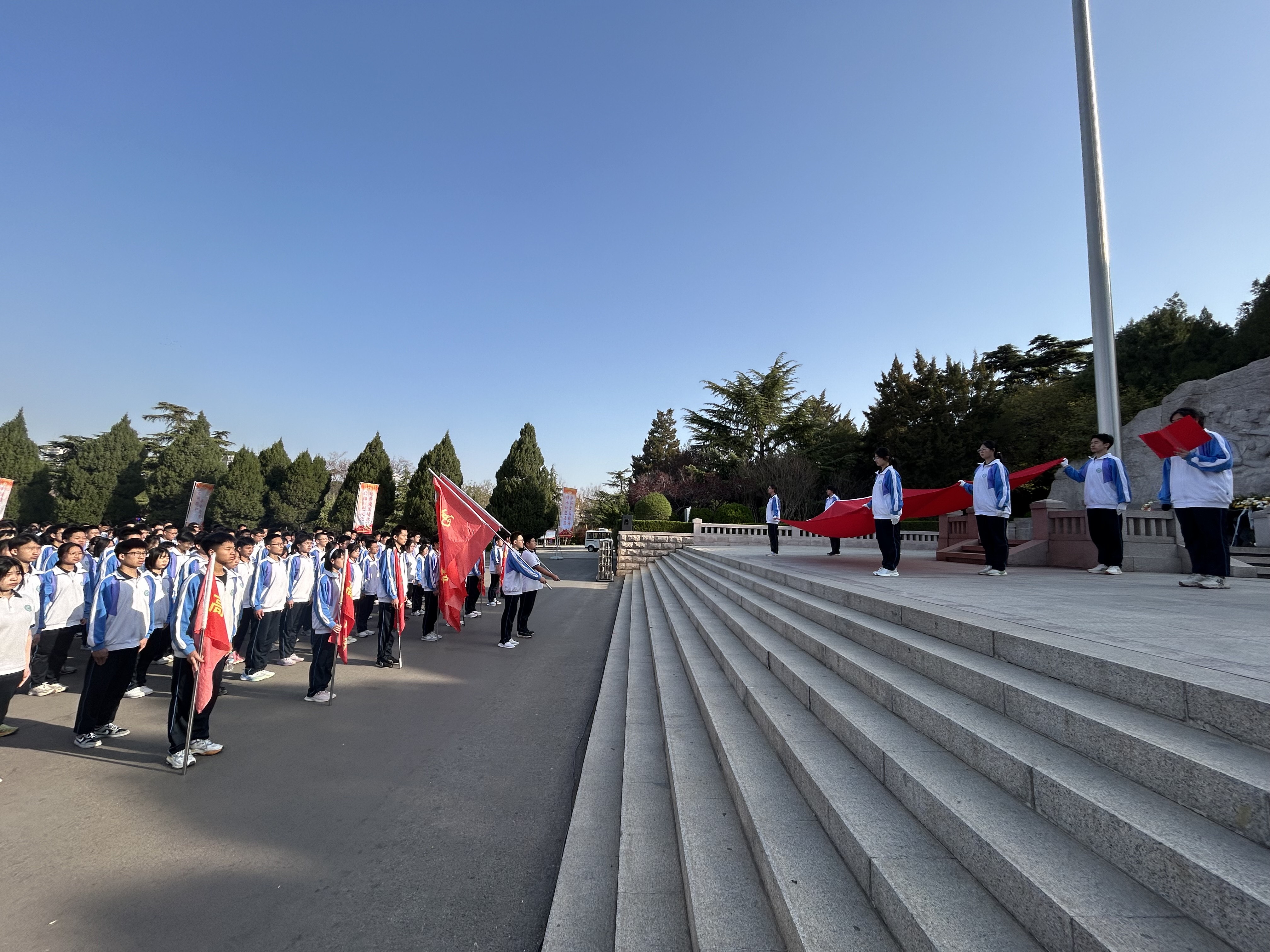 红色铸魂,砥砺爱国之志。 爱国主义教育绝非空洞言说。清明时分,学子们步入济南战役纪念馆,行走在英雄山烈士陵园,一堂“行走的思政课”让革命历史变得可感可触。观看《西安事变》影片并聆听历史背景深度解读,孟良崮研学之旅亲临历史现场,共同构建起跨越时空的精神对话,激发起学子们深沉而炽热的家国情怀。