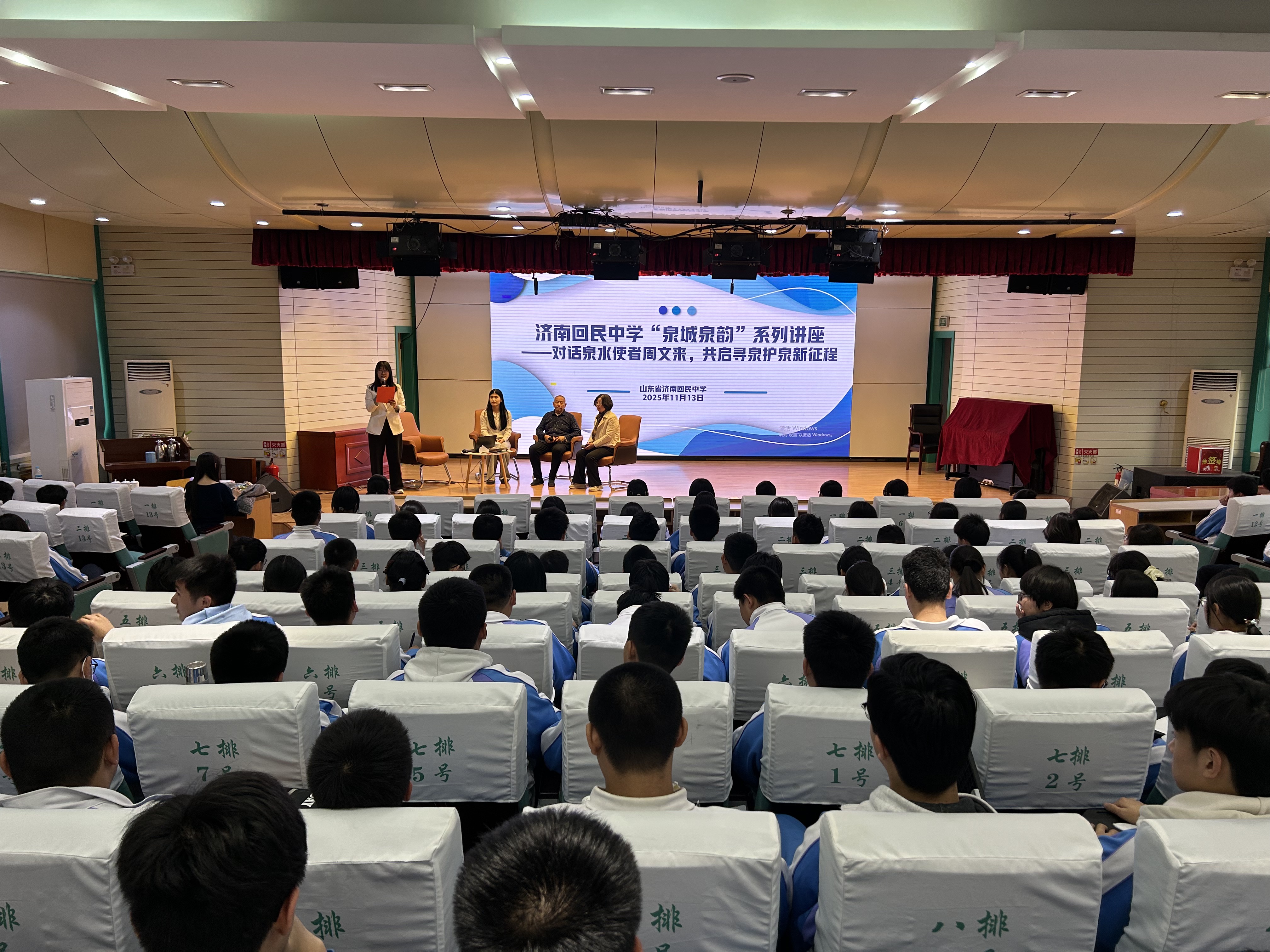 秋季,两场活动编织成一条文化自觉的链条。先是“泉城泉韵”主题讲座,让地理教师讲岩层构造,语文教师诵读《老残游记》,更请来寻泉人周文来,讲述他二十年徒步记录九百处泉眼的痴念。科学、文学与人的故事,三位一体,为学生构建立体的乡愁。