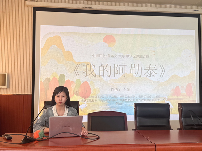 第一期以语文组王松老师为主讲,分享书目为《我的阿勒泰》。活动伊始,王松老师以一段阿勒泰风光短片为引,巧妙结合学生对边疆“遥远、荒凉、苦寒”的刻板印象,抛出核心问题“阿勒泰究竟是怎样的地方?”,迅速唤醒学生的阅读期待。通过互动问答,顺势引出作者李娟的人生经历——生于新疆兵团,辍学后随母奔波、逐牧而居的真实过往,以及她斩获鲁迅文学奖、作品跨界改编入围戛纳电影节的非凡成就,让学生直观感受“文字的力量让故乡被世界看见”,深刻理解作品背后扎根生活、笔耕不辍的创作内核。