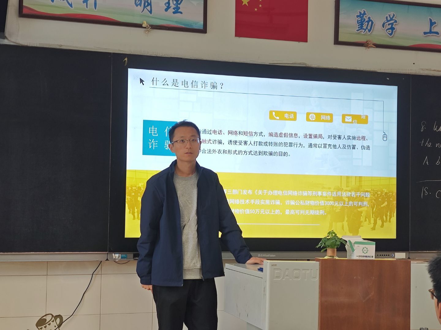 班会伊始,各班主任结合学生年龄特点和生活实际,以通俗易懂的语言,向学生讲解了电信网络诈骗的定义、常见类型及危害。重点围绕刷单返利、虚假中奖、冒充老师/家长/客服、校园贷、游戏账号交易诈骗等学生易遭受诈骗的场景,通过典型案例剖析、诈骗话术还原等方式,详细拆解了诈骗分子的作案手段和套路,让学生清晰认识到诈骗的隐蔽性和危害性——轻则造成财产损失,重则影响身心健康和家庭幸福。