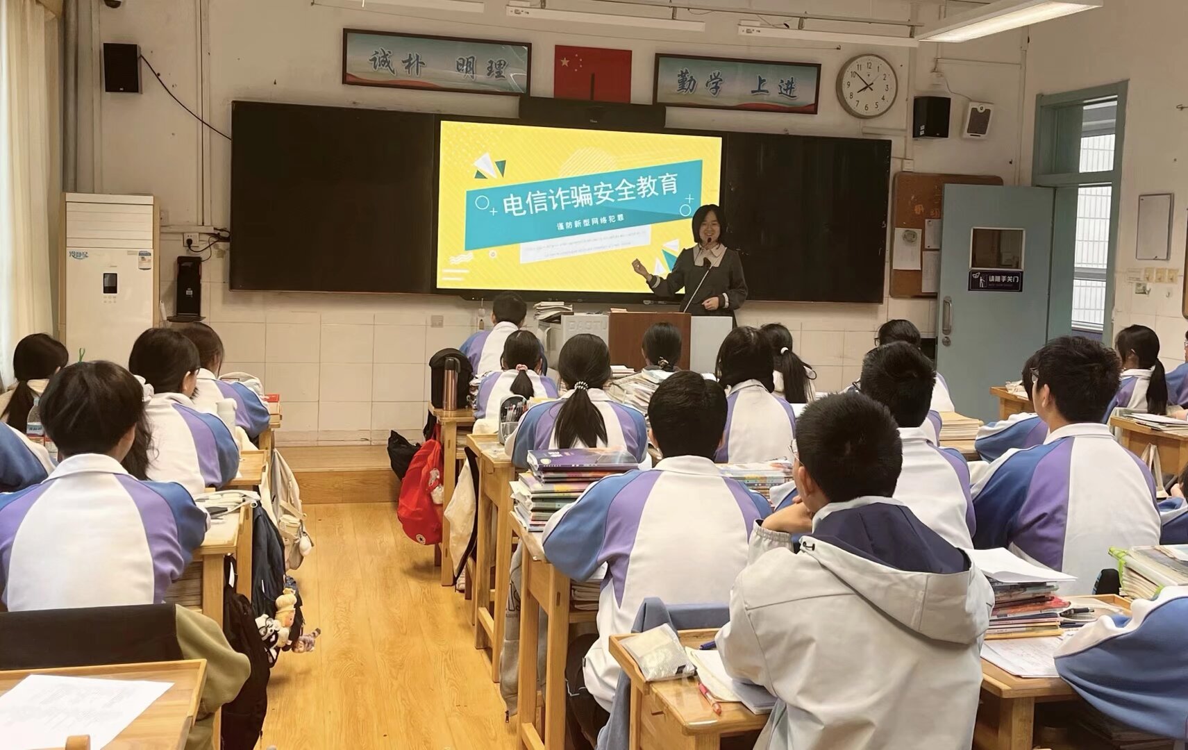 为切实提高学生防范电信网络诈骗的意识和能力,有效遏制电信网络诈骗案件在学生群体中发生,守护学生财产安全和身心健康,近日,我校各班级同步开展“防范电信网络诈骗”主题班会活动,全体学生参与此次班会,共同学习反诈知识、筑牢安全防线。