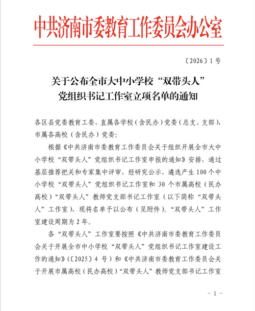 近日,中共济南市委教育工委组织开展了全市大中小学校“双带头人”党组织书记工作室评选,济南回民中学文科党支部书记工作室光荣入选。这既是对该支部党建工作的肯定,也是对今后党建与业务融合工作更上一层楼的鞭策。
