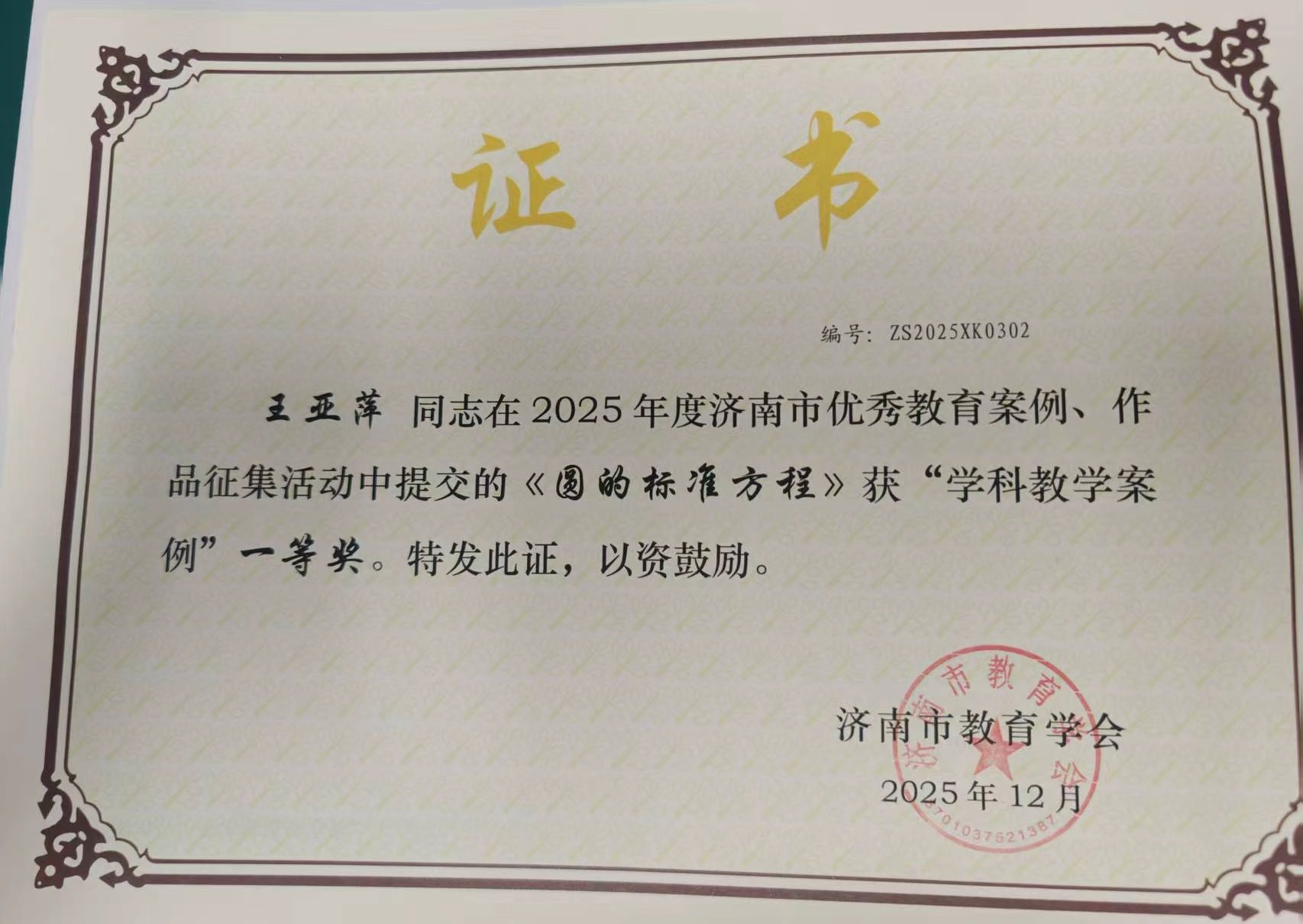 喜报:王松老师荣获济南市优秀教育案例二等奖