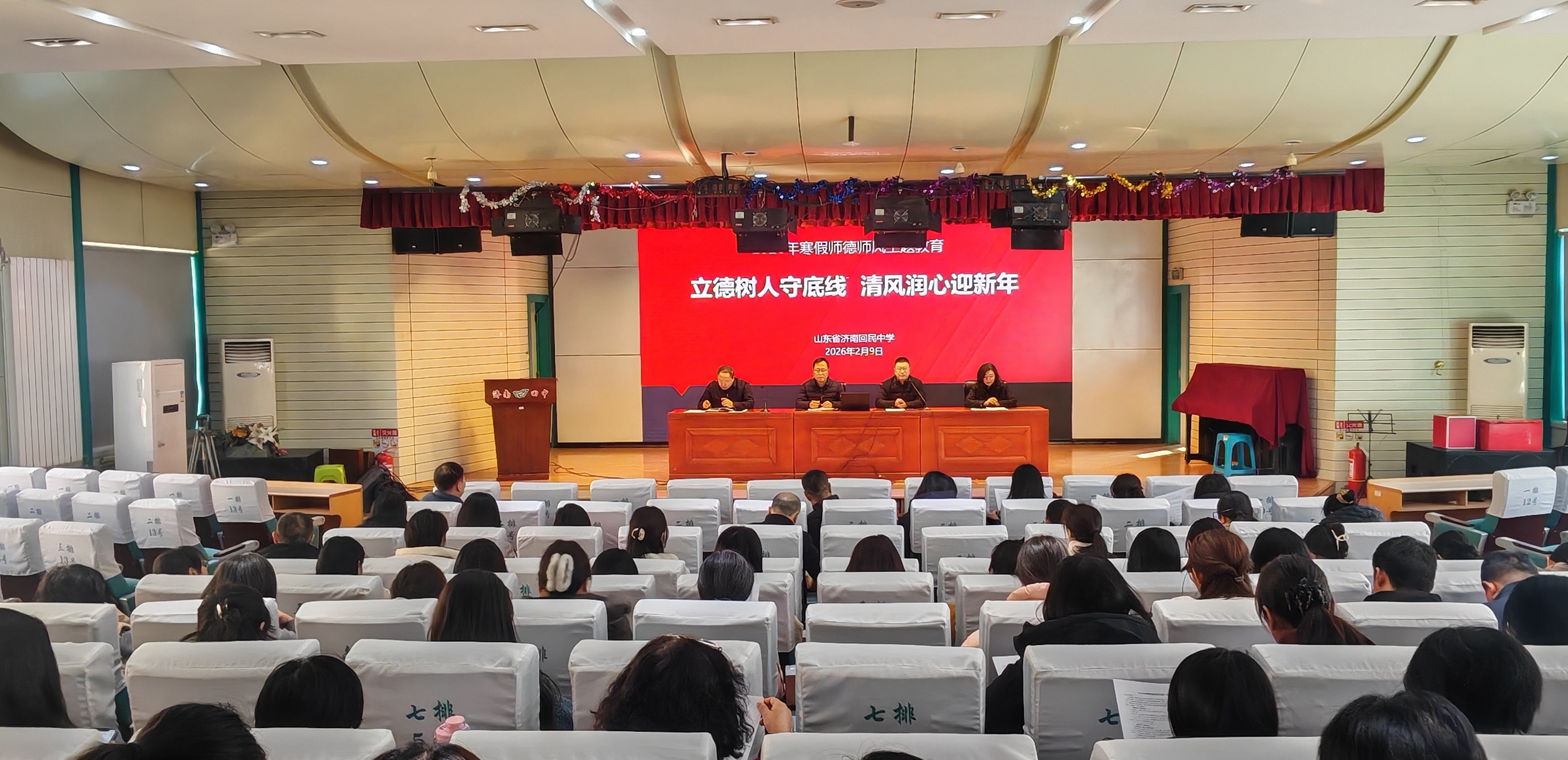 为筑牢寒假安全防线,明确实践方向,科学规划假期,2月9日上午,济南回民中学寒假休业式在庄严而温馨的氛围中圆满举行。本次休业式以“安全护航、实践赋能、规...