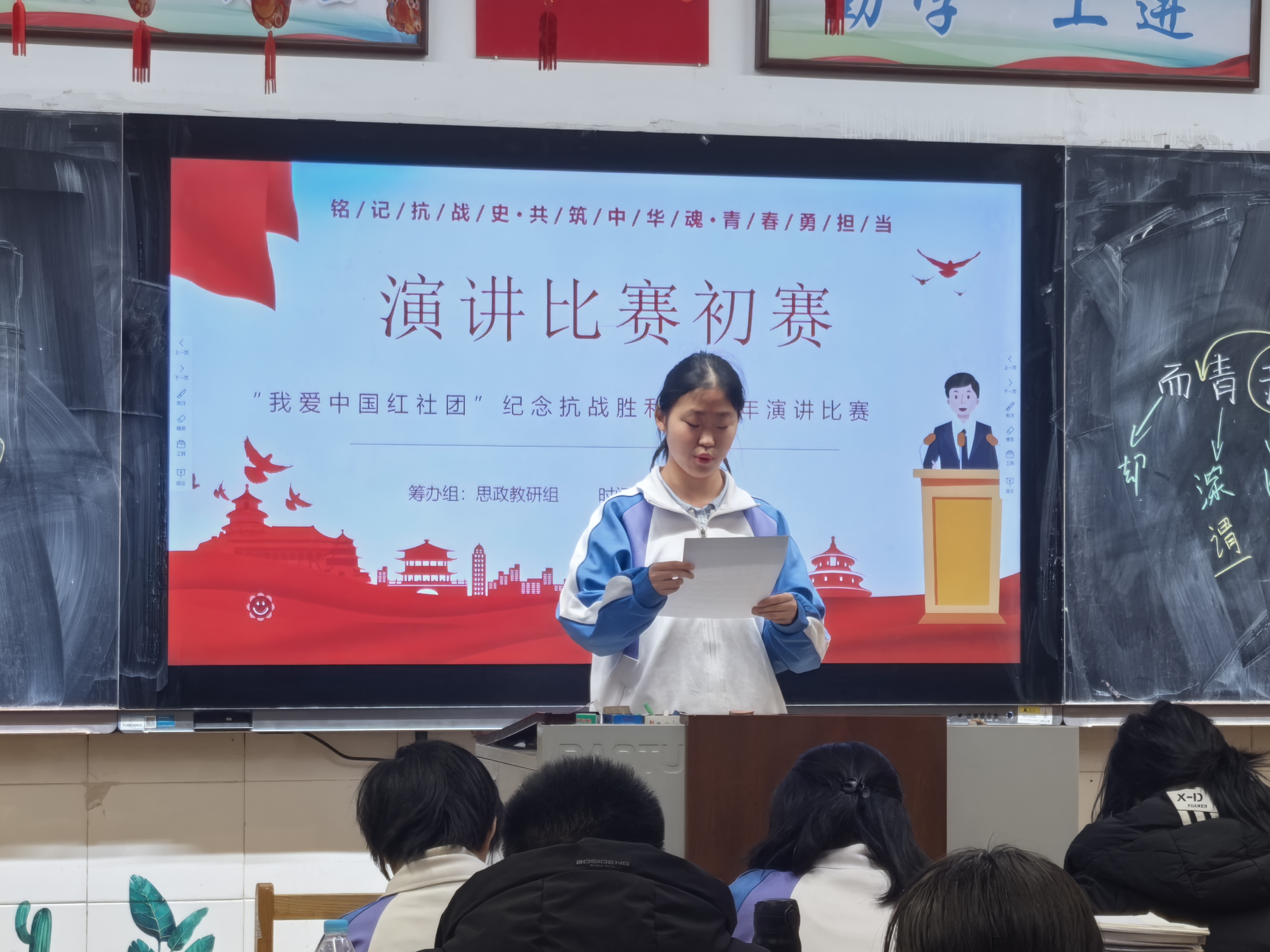 自启动以来,比赛得到高一年级学生的积极响应。思政教研组为选手提供了专业的主题指导与素材支持,同学们在筹备过程中反复打磨讲稿,进一步深入学习抗战历史,厚植家国情怀,深化对中华民族共同体的理解。本次初赛不仅为学生搭建起展示风采、表达观点的平台,更是一堂生动的爱国主义与民族团结教育实践课,让抗战精神与团结信念在校园深深扎根。