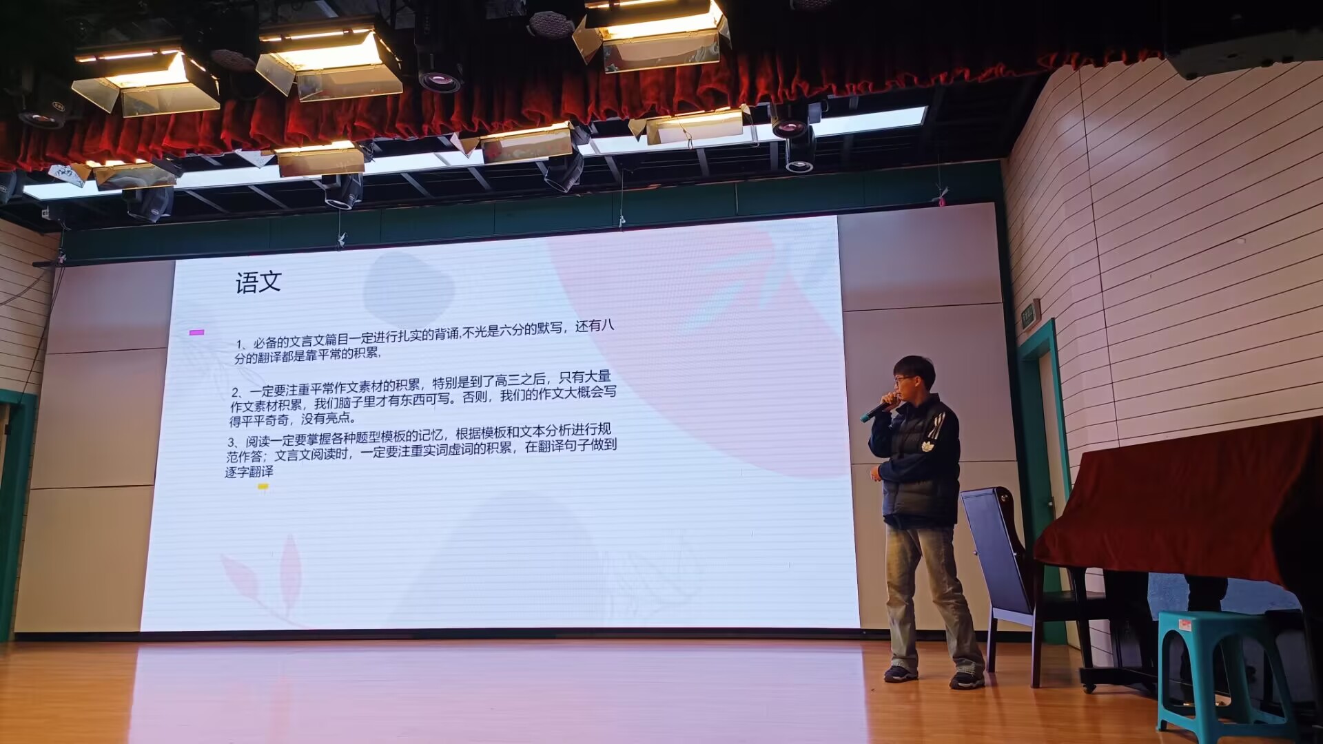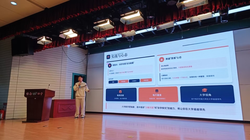 分享会上,2024届优秀毕业刘嘉伟和2025届优秀毕业生陈振城、姜禾结合自身求学经历与成长感悟,从不同维度分享干货。刘嘉伟擅长心态调节和时间规划,给学弟学妹讲解各科学习技巧以及如何克服备考焦虑、平衡学习与休息,助力高三学子轻装上阵;结合大学生活,为高一高二学生提供学业规划的实用建议,引导学弟学妹明确奋斗目标。陈振城同学分享了构建知识网络、错题复盘等夯实基础的积累办法,诠释“勤能补拙”的真谛;英语特别突出的姜禾同学重点介绍了提升英语语感、单词记忆、完形填空以及作文写作等方面的经验。
