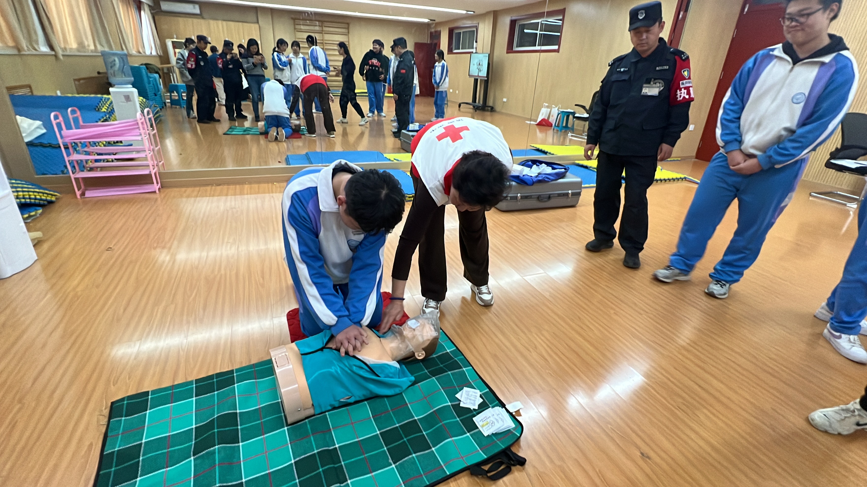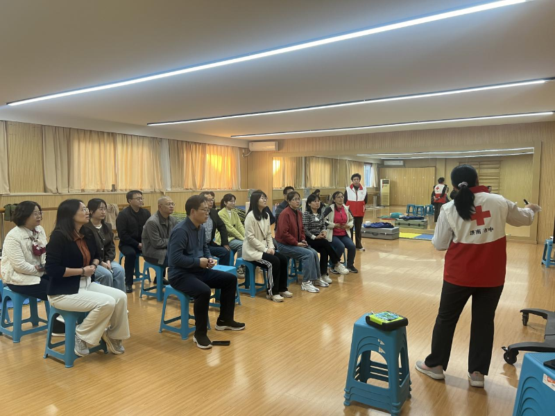 10月28日,红十字会急救专家来到济南回民中学,为师生、安保人员以及物业人员带来了一场意义非凡的急救培训。此次培训的专业讲师是有着30余年急救培训经验的刘蓉老师团队。 培训内容涵盖了心肺复苏和海姆立克急救法这两项关键急救技能。培训现场,刘蓉老师通过理论讲解与实际操作演示相结合的方式,向参与人员详细介绍了急救操作的要点。无论是心肺复苏的按压频率、深度,还是海姆立克急救法针对不同人群的实施手法,都讲解得清晰明了。 在实际操作环节,师生们积极参与。老师们先一步上手,他们按照讲师的指导,在模拟人上进行心肺复苏,双手交叠、垂直按压,每一次按压都认真控制力度和频率,额头上渗出汗水,但眼神依然专注。在海姆立克急救法练习中,老师们互相合作,准确地实施操作,手法熟练。 同学们也不但示弱,在练习心肺复苏时,有模有样的按压、通气,遇到问题及时向讲师请教。 一位老师感慨道:“这次培训让我深刻认识到急救知识的重要性,多一份技能,在关键时刻就可能多挽救一条生命,以后也能更好地保护学生。”安保人员也表示:“我们守护校园安全,这些急救方法让我们更有底气应对突发状况。”同学们则纷纷表示,这次培训让他们学到了书本之外的实用知识,收获满满。 济南回民中学师生认真学习培训知识,积极参与模拟练习,进一步提升了应对突发紧急情况的能力,为校园安全增添了一份有力保障。