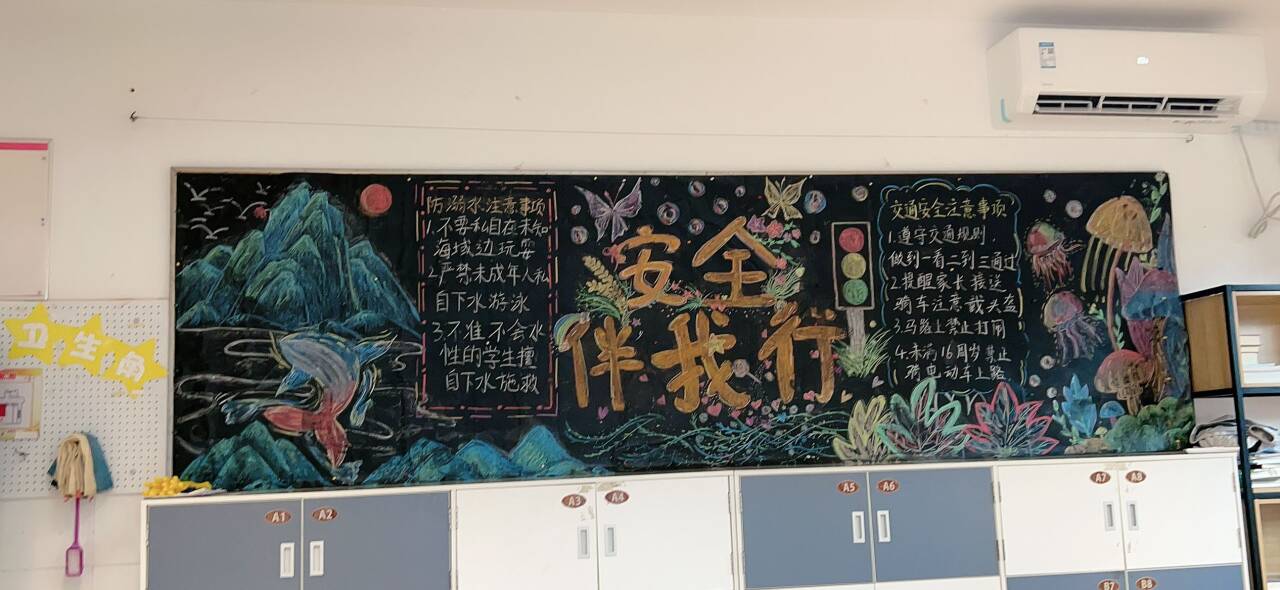 一、科学规划,主题鲜明,构建连贯性育人脉络 本次后黑板报方案经过精心设计,体现了系统性和创新性。学校将三大教育主题分解细化,固定于不同楼层的班级教室后黑板: 一楼班级“平安校园·生命至上”主题,聚焦消防安全与总体国家安全观,筑牢师生安全意识防线; 二楼班级“守望青春·拒绝伤害”主题,涵盖防欺凌、网络安全与防溺水,守护学生青春成长; 三楼班级“文脉流长·民族瑰宝”主题,动态展示传统节日文化,增强学生文化自信;